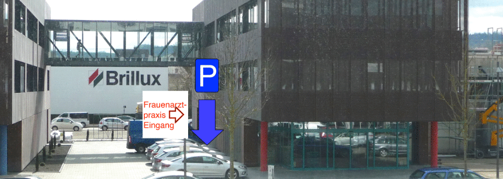 Neben dem Eingang befinden sich 4 beschilderte Parkplätze, die Sie während Ihres Praxisbesuches verwenden können.